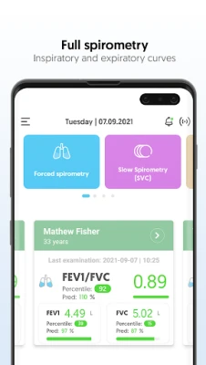 We made spirometry easy and accessible to any healthcare professional, regardless if the examination is performed in the office, hospital (bedside testing) or at home. Advanced AI based algorithms assist during the inhale/exhale maneuvers to assure high quality examination and to prevent typical errors during spirometry performed by less experienced patients and operators or without supervision.