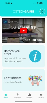 In the OSTEO-GAINS Bone Health Program, you will be guided through a structured exercise program that becomes progressively more difficult over 12 months.