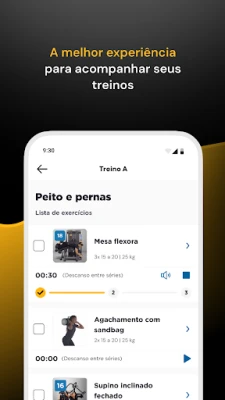 Tenha acesso a vídeos explicativos de todos os exercícios das suas séries de musculação. Treine com segurança, encontrando facilmente os equipamentos necessários para cada movimento. Basta seguir as instruções no app!