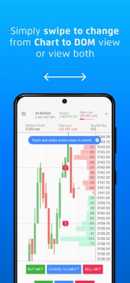 • See the Action as it Happens - Swipe to change from Chart to DOM view or view both on the same screen.
